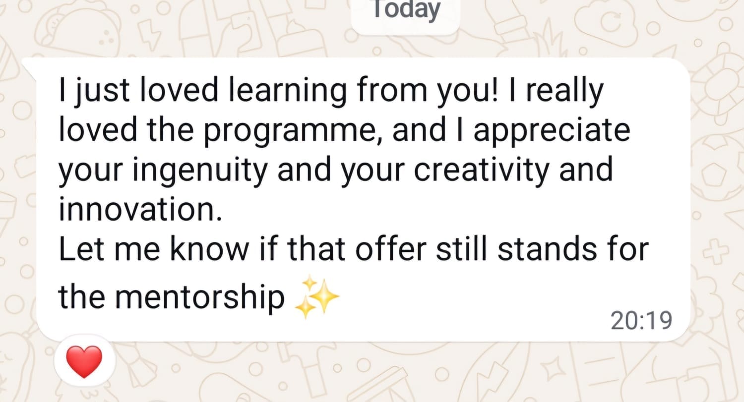💬 “Sometimes I can feel I get stuck and need guidance, and you really gave that to me and my whole family.”